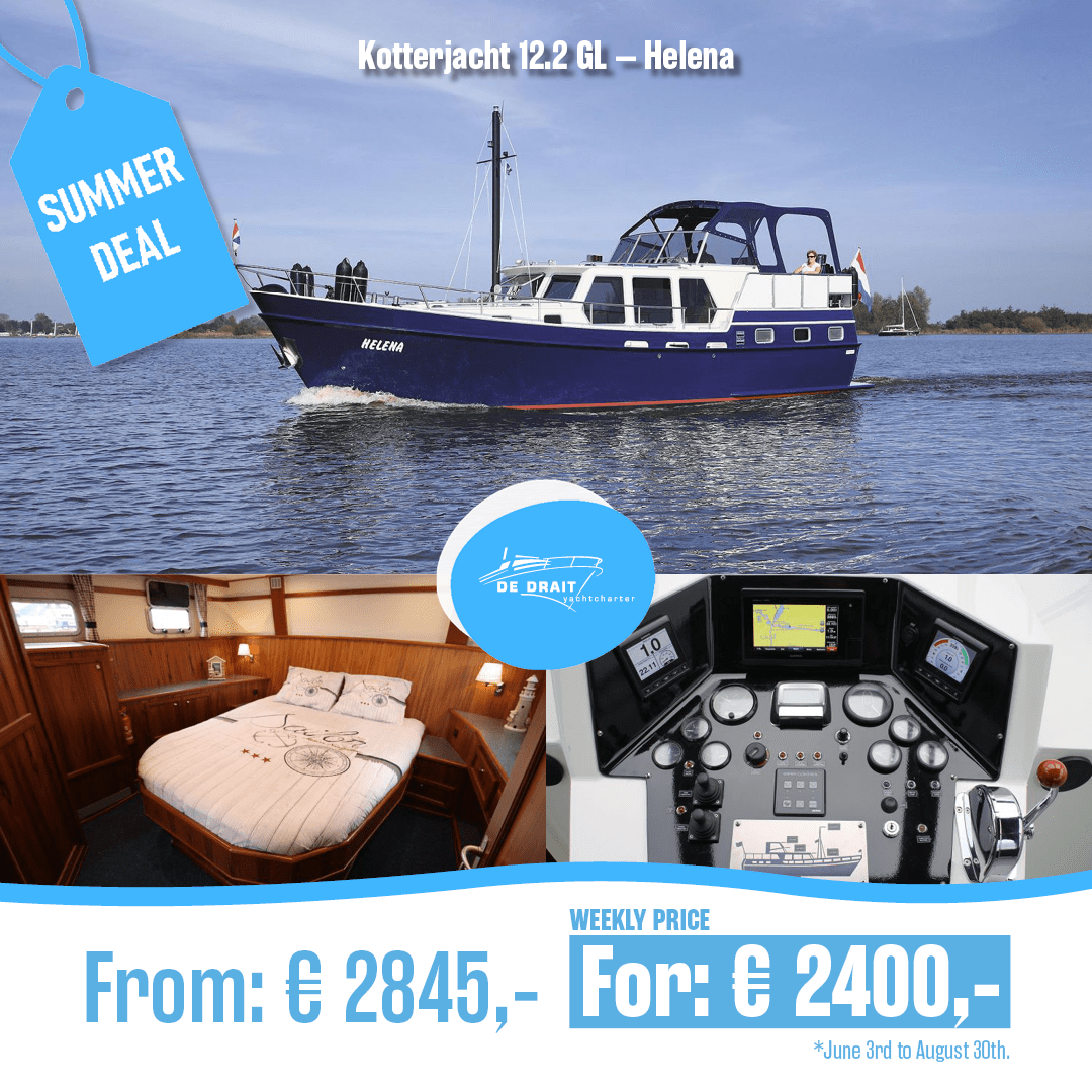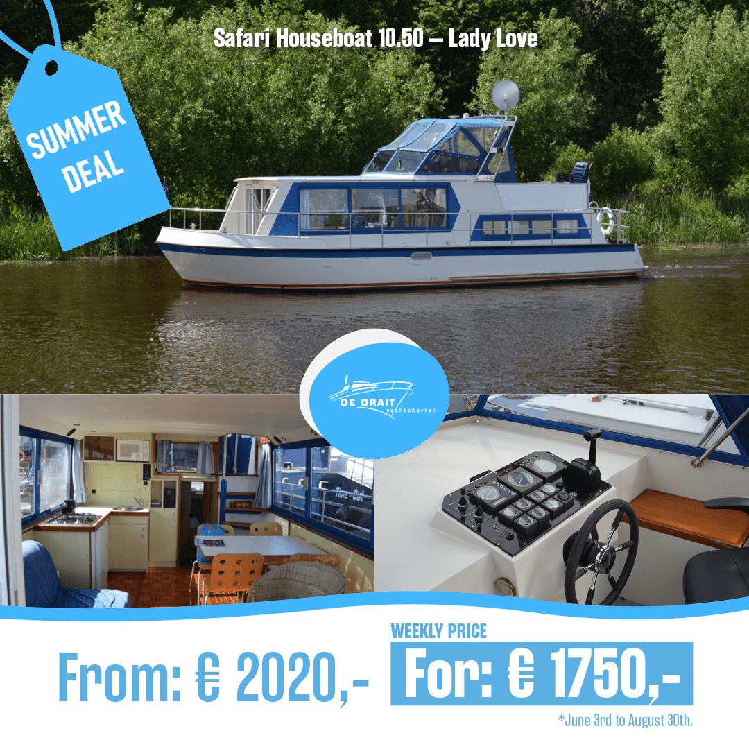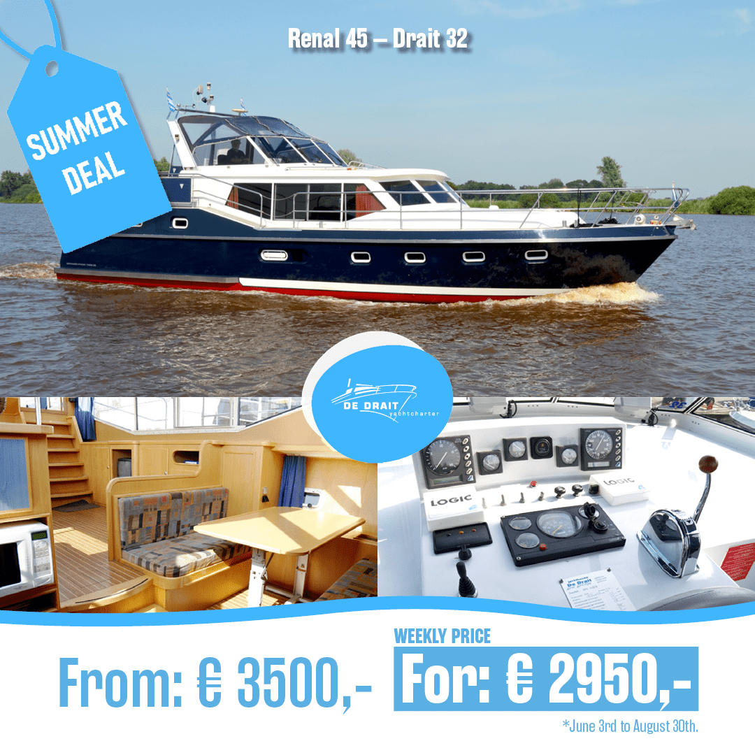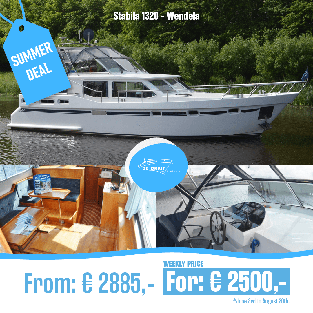 Die Buchungen für den kommenden Sommer laufen bereits auf Hochtouren! Seien Sie schnell und profitieren Sie von unseren Summer Deals Friesland, sommerlichen Preisen in den Monaten Juni, Juli und August! Diese Sommerangebote gelten für verschiedene Boote in Drachten, Woudsend und Brandenburg. Überprüfen Sie die Verfügbarkeit online oder fragen Sie per E-Mail unter contact@dedrait.com nach. *Aktion gültig für Abfahrten vom 3. Juni bis zum 30. August.