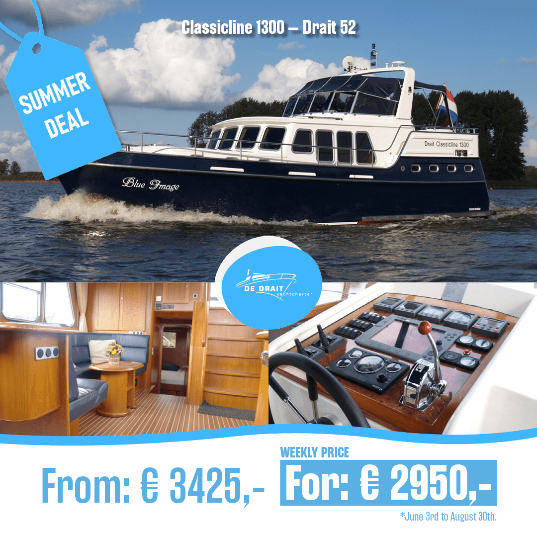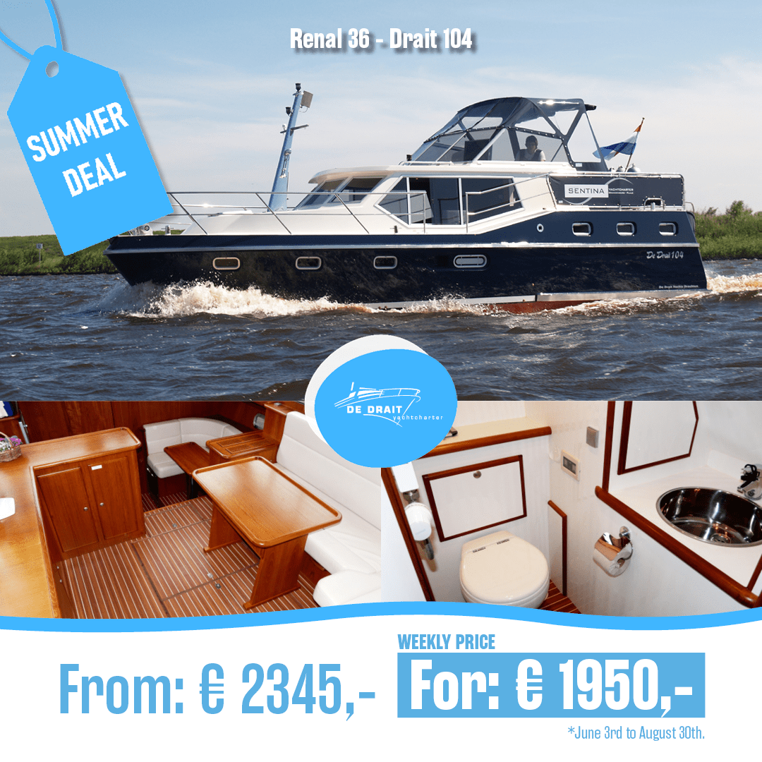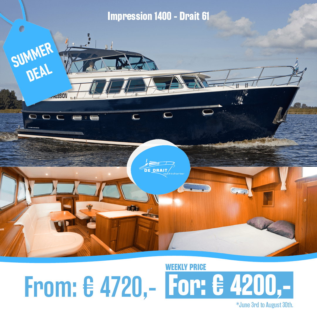 Die Buchungen für den kommenden Sommer laufen bereits auf Hochtouren! Seien Sie schnell und profitieren Sie von unseren Summer Deals Friesland, sommerlichen Preisen in den Monaten Juni, Juli und August! Diese Sommerangebote gelten für verschiedene Boote in Drachten, Woudsend und Brandenburg. Überprüfen Sie die Verfügbarkeit online oder fragen Sie per E-Mail unter contact@dedrait.com nach. *Aktion gültig für Abfahrten vom 3. Juni bis zum 30. August.
