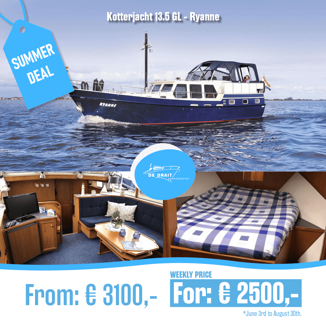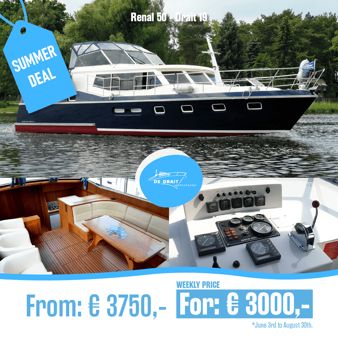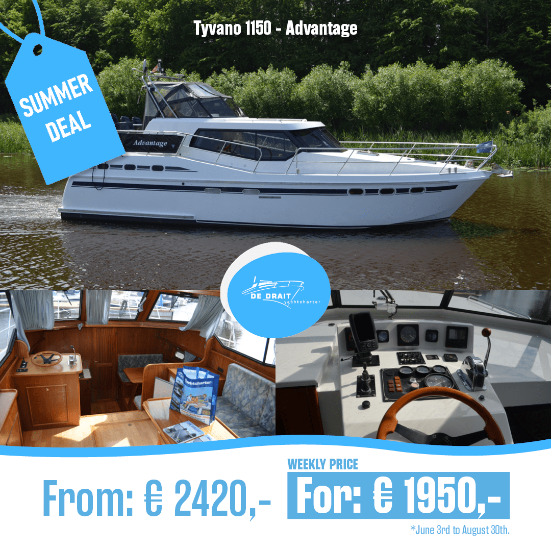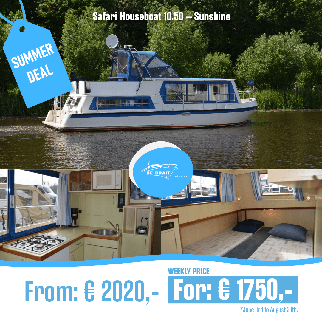 Die Buchungen für den kommenden Sommer laufen bereits auf Hochtouren! Seien Sie schnell und profitieren Sie von unseren Summer Deals Friesland, sommerlichen Preisen in den Monaten Juni, Juli und August! Diese Sommerangebote gelten für verschiedene Boote in Drachten, Woudsend und Brandenburg. Überprüfen Sie die Verfügbarkeit online oder fragen Sie per E-Mail unter contact@dedrait.com nach. *Aktion gültig für Abfahrten vom 3. Juni bis zum 30. August.