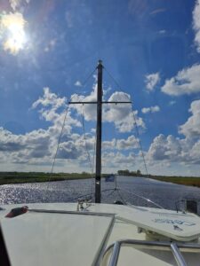 During a boat trip from Joure towards the Sneekermeer, you’ll pass the versatile Rufus aan het Water. In addition to a campsite and boat rental, there’s a lovely waterside terrace where you can enjoy breakfast or lunch. Have you seen the bicycle ferry? Many cyclists and walkers use the ferry to cross from one bank to the other, continuing their journey through the Frisian countryside. Click here for more information about Rufus aan het Water in Broek.