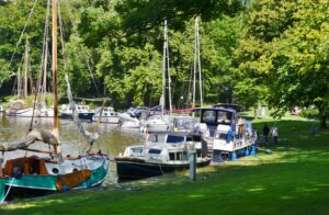 After a boat trip through the Alde Feanen nature reserve, you head towards Grou. Grou is a true watersports village. On the Pikmeer, next to the Grou Marina, you’ll find the restaurant Het Theehuis. Moor at one of the docks by the restaurant and enjoy a cozy lunch or drinks here. Click here for more information about Het Theehuis in Grou.